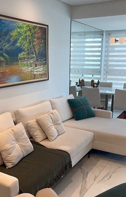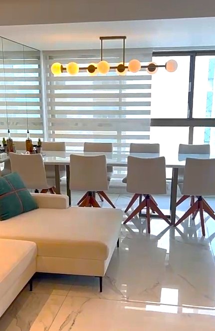 Com todos os eletrodomésticos: 04 TVs; equipamentos de ar-condicionado nos 3 dormitórios e um, tipo cassete, na sala; freezer; geladeira; fogão cooktop; adega; cervejeira; frigobar; máquina lavar roupas 17Kg.